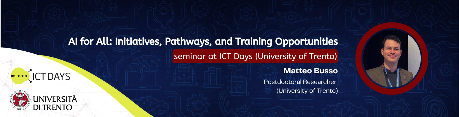 As part of the program, the event will feature a Seminar with Matteo Busso (University of Trento, Department of Information Engineering and Computer Science) titled “AI for All: Initiatives, Pathways, and Training Opportunities”.