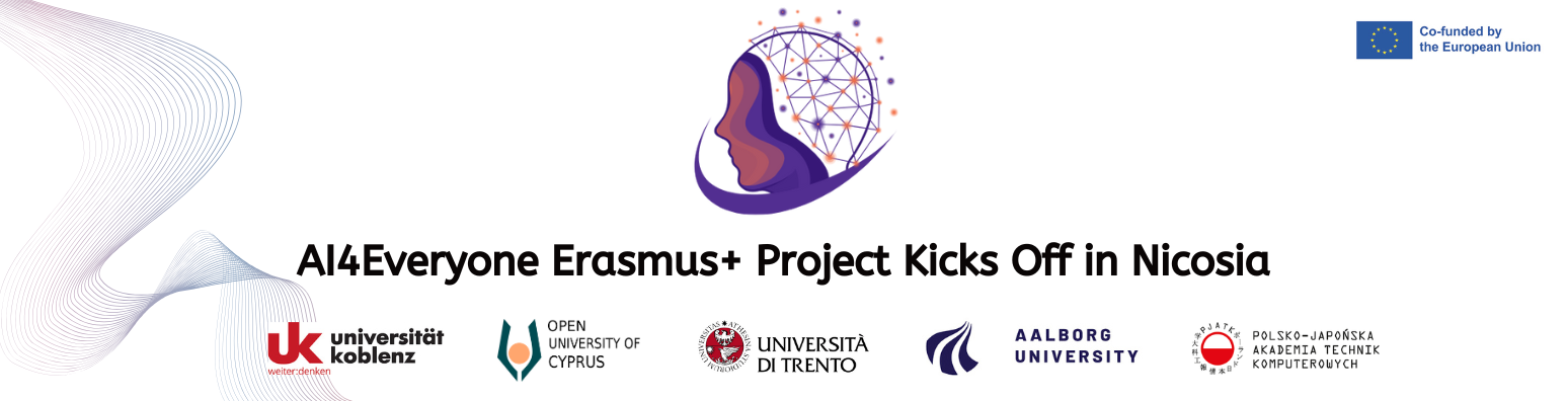 The AI4Everyone Erasmus+ Project (2025-1-CY01-KA220-HED-000364525) officially launched with its kick-off meeting in Nicosia, Cyprus, on 18–19 September 2025. Coordinated by Dr. Styliani Kleanthous, Assistant Professor in Human-AI Interaction and co-director of the Cyprus Center for Trustworthy AI (CyCAT), Open University of Cyprus, the project brings together leading European institutions: the University of Trento (Italy), University of Koblenz (Germany), Aalborg University (Denmark), and the Polish-Japanese Academy of Information Technology (Poland).